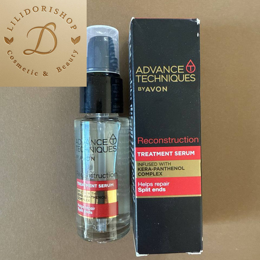 سرم موی Avon Advance Techniques Reconstruction Treatment یک محصول ترمیم‌کننده و تقویت‌کننده برای موهای آسیب‌دیده، شکننده و خشک است که با فرمول غنی از کراتین و پروتئین، ساختار مو را بازسازی کرده و از موخوره و شکستگی جلوگیری می‌کند. حجم ۳۰ میلی‌لیتر، بدون نیاز به آبکشی.