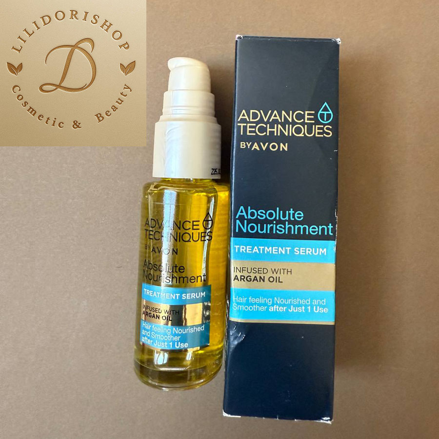 Advance Techniques Absolute Nourishment از برند AVON یک سرم موی مغذی و آبرسان با روغن آرگان و نارگیل است که برای موهای خشک، آسیب‌دیده و رنگ‌شده طراحی شده. این محصول با حجم ۳۰ میلی‌لیتر، به نرمی، درخشندگی و ترمیم موها کمک می‌کند و بدون نیاز به آبکشی قابل استفاده است.
