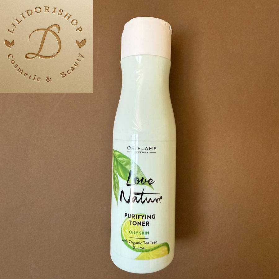 Love Nature Purifying Toner with Organic Tea Tree & Lime از برند Oriflame یک تونر گیاهی و وگان برای پوستهای چرب و مستعد جوش است که با کنترل چربی، پاکسازی منافذ و کاهش لکها، پوست را مات و شفاف میسازد. حجم محصول ۱۵۰ میلیلیتر است.
