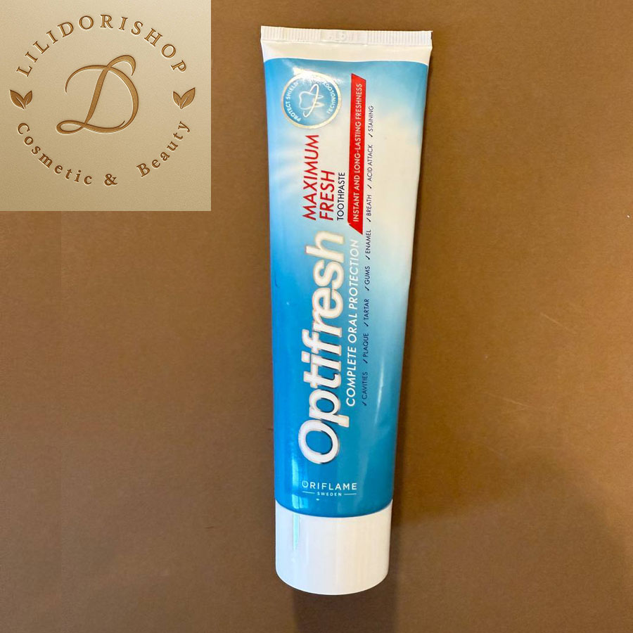 اگر دنبال لبخندی درخشان با نفس خنک و تازه برای تمام طول روز هستی، خمیردندان Optifresh Maximum Fresh دقیقاً برای تو ساخته شده. این خمیردندان با فناوری Protect Shield™ از کل دهان مراقبت میکند — از دندانها و لثهها گرفته تا زبان و گونهها. فرمول غنیشده با فلوراید (1450 ppm) به پیشگیری از پوسیدگی کمک کرده و هر بار مسواک زدن، حسی از طراوت و پاکیزگی عمیق به جا میگذارد.