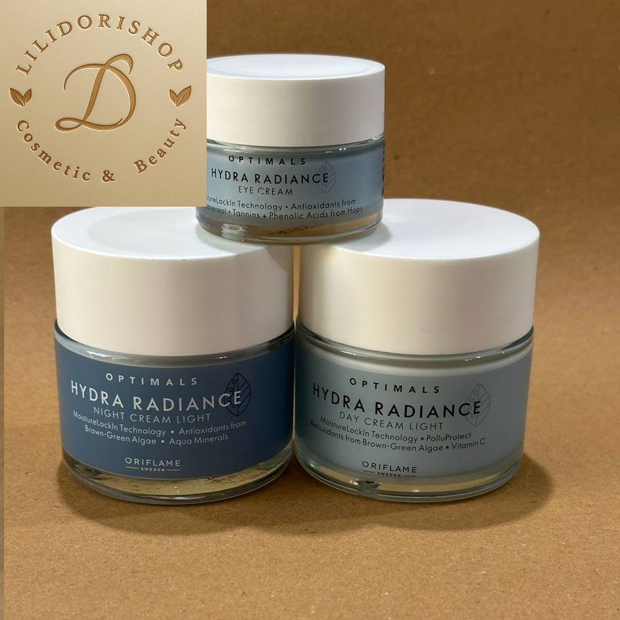 ست کامل Optimals Hydra Radiance از برند اوریفلیم شامل سه محصول تخصصی برای مراقبت روزانه و شبانه پوست است: