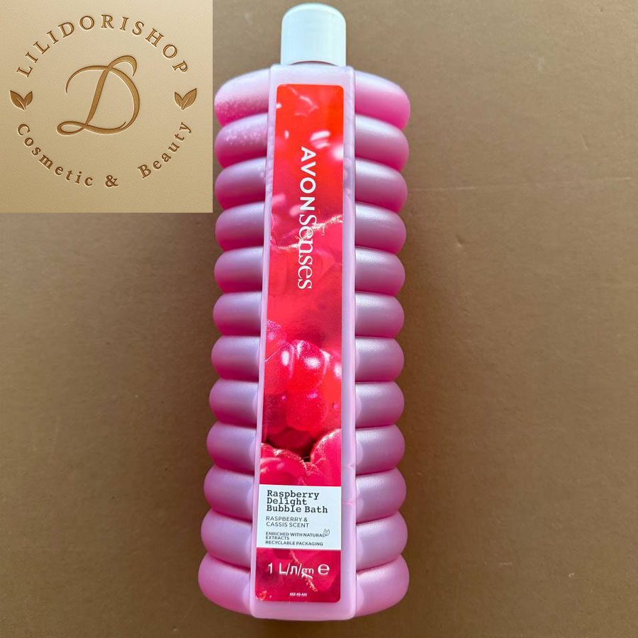 Avon Senses Raspberry Delight Bubble Bath – 500ml از سری Senses برند ایون، یک محلول حمام کفدار با رایحه میوهای و دلپذیر است که با ترکیبات طبیعی، حس طراوت و آرامش را در حمام ایجاد میکند. این محصول با عصارههای طبیعی تمشک و انگور سیاه (Cassis) فرموله شده و برای استفاده روزانه یا لحظات خاص طراحی شده است.