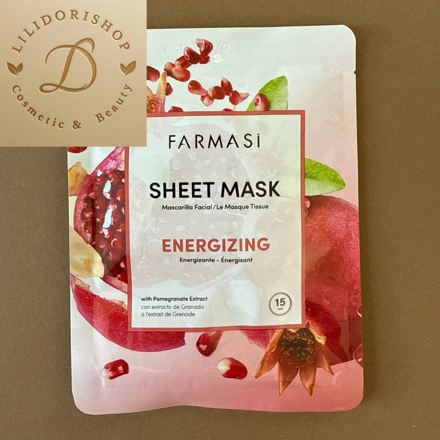 کد محصول 1002244 مربوط به «ماسک ورقهای انرژیبخش انار فارماسی – بسته ۵ عددی» (Farmasi Energizing Pomegranate Sheet Mask – 5 pcs) است. این ماسکها برای آبرسانی، شادابسازی و طراوت فوری پوست طراحی شدهاند.