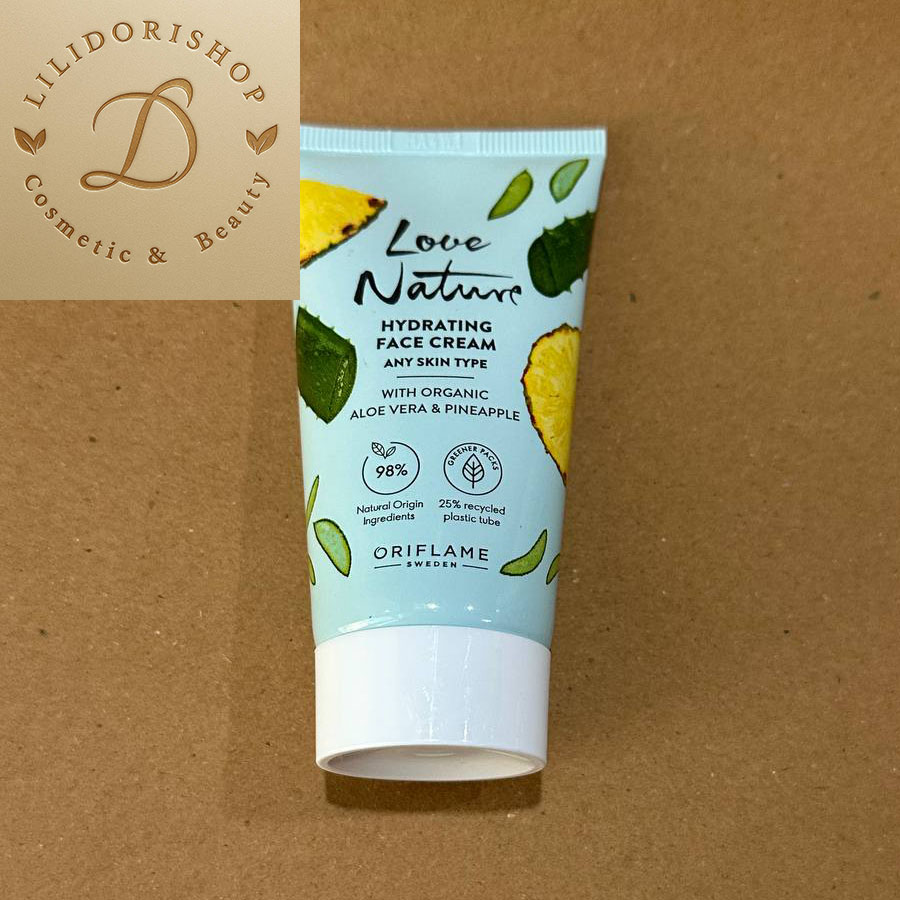 Love Nature Hydrating Face Cream with Organic Aloe Vera & Pineapple یک کرم روزانه سبک و جذبشونده سریع از سری Love Nature برند اوریفلیم است. این محصول با ترکیبات طبیعی و ارگانیک مثل آلوئهورا از مکزیک و عصاره آناناس غنی از آنزیم بروملین، ویتامین A و C فرموله شده و به پوست کمک میکند تا آبرسانی شود، شفافتر و نرمتر به نظر برسد.